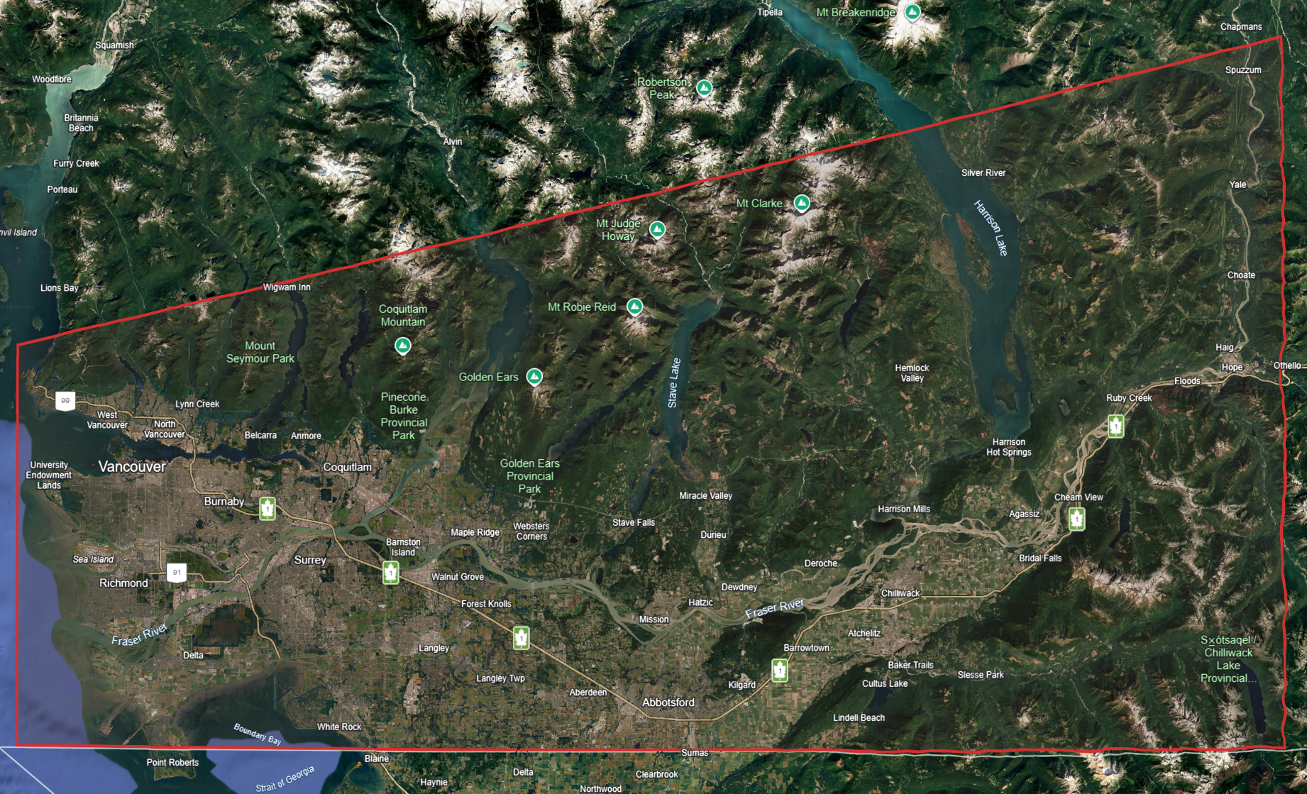 The western boundary is now the Salish Sea / Georgia Strait to the South and